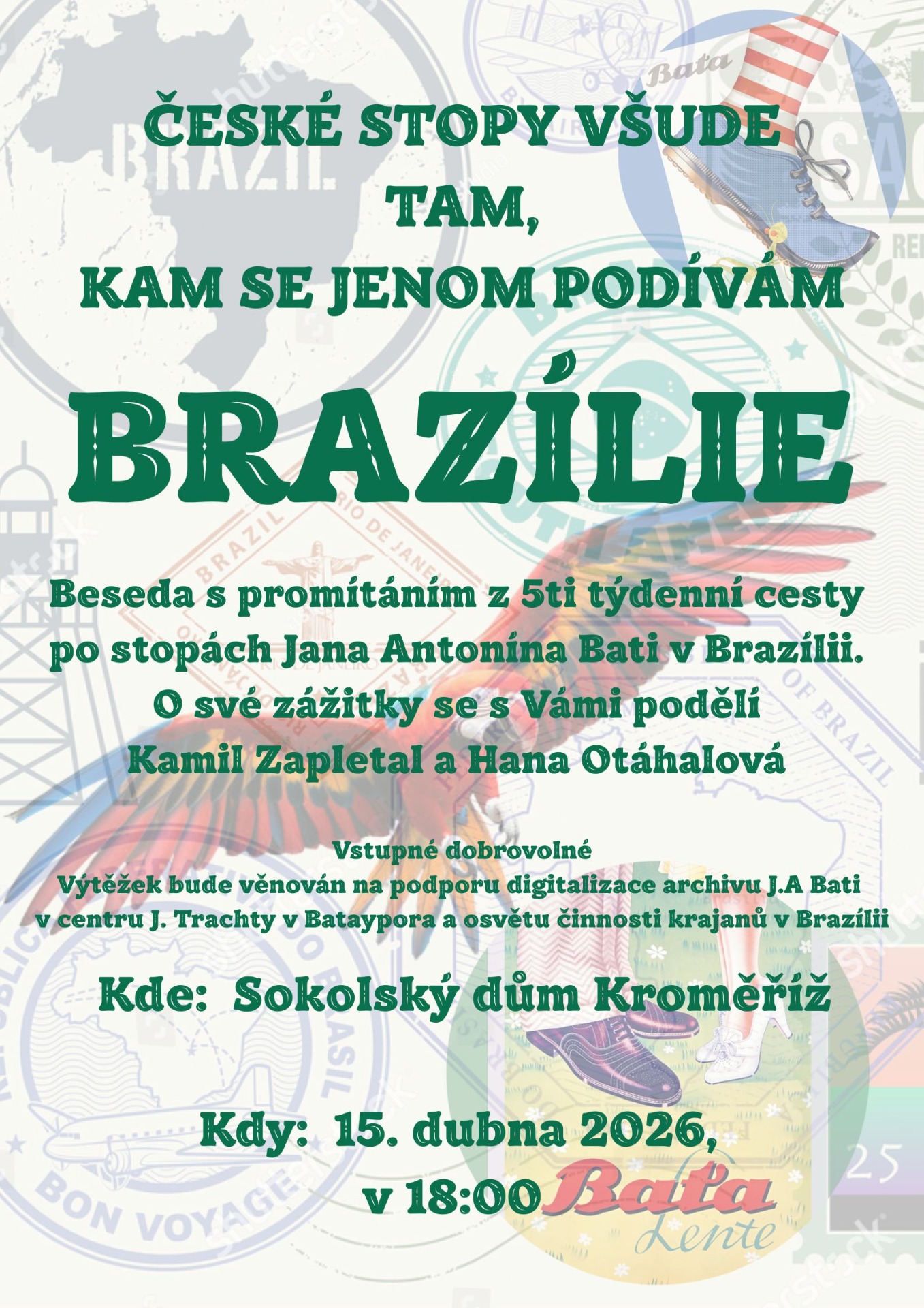 Zveme Vás na besedu s promítáním z 5ti týdenní cesty po stopách Jana Antonína Bati v Brazílii. O své zážitky se s Vámi podělí Kamil Zapletal a Hana Otáhalová.