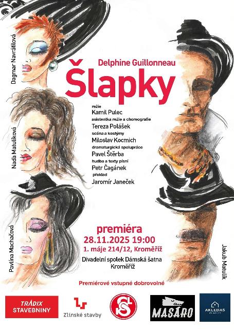 Je tomu už deset let, co jsme uvedli naši první společnou hru Dámská Šatna. Po ní následovaly tituly Vzpoura nevěst a Taneční hodina. Nyní přicházíme s hrou Šlapky. Na divadelní prkna se k nám vrátil Jakub Matulík, který byl s námi sice stále, ale dosud seděl za technikou. Nově jsme také získali profesionálního herce a režiséra, pana Kamila Pulce. Ten s sebou přivedl široký tým profesionálů, kteří se o novou inscenaci postarali: Choreografka: Tereza Polášek Scénograf: Miloslav Kocmich Dramaturg: Pavel Štěrba Skladatel a textař: Petr Čagánek Nově se hudbě a světlům věnují Patrik Polášek a Eliška Skácelová, kteří nahradili Jakuba v technickém týmu.