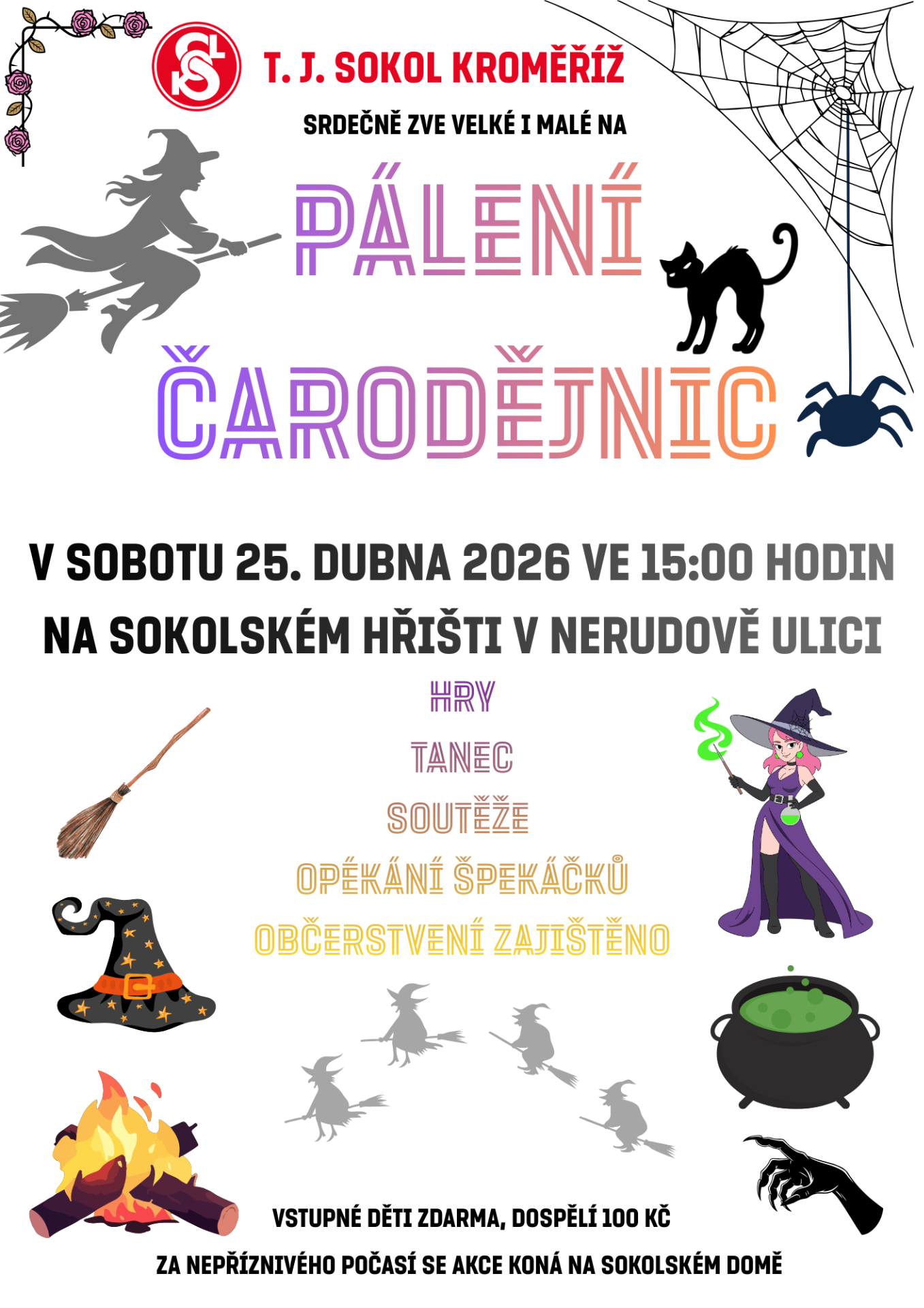 Odpoledne plné kouzel pro malé i velké čarodějnice a čaroděje na Sokolské hřiště v Nerudově ulici.